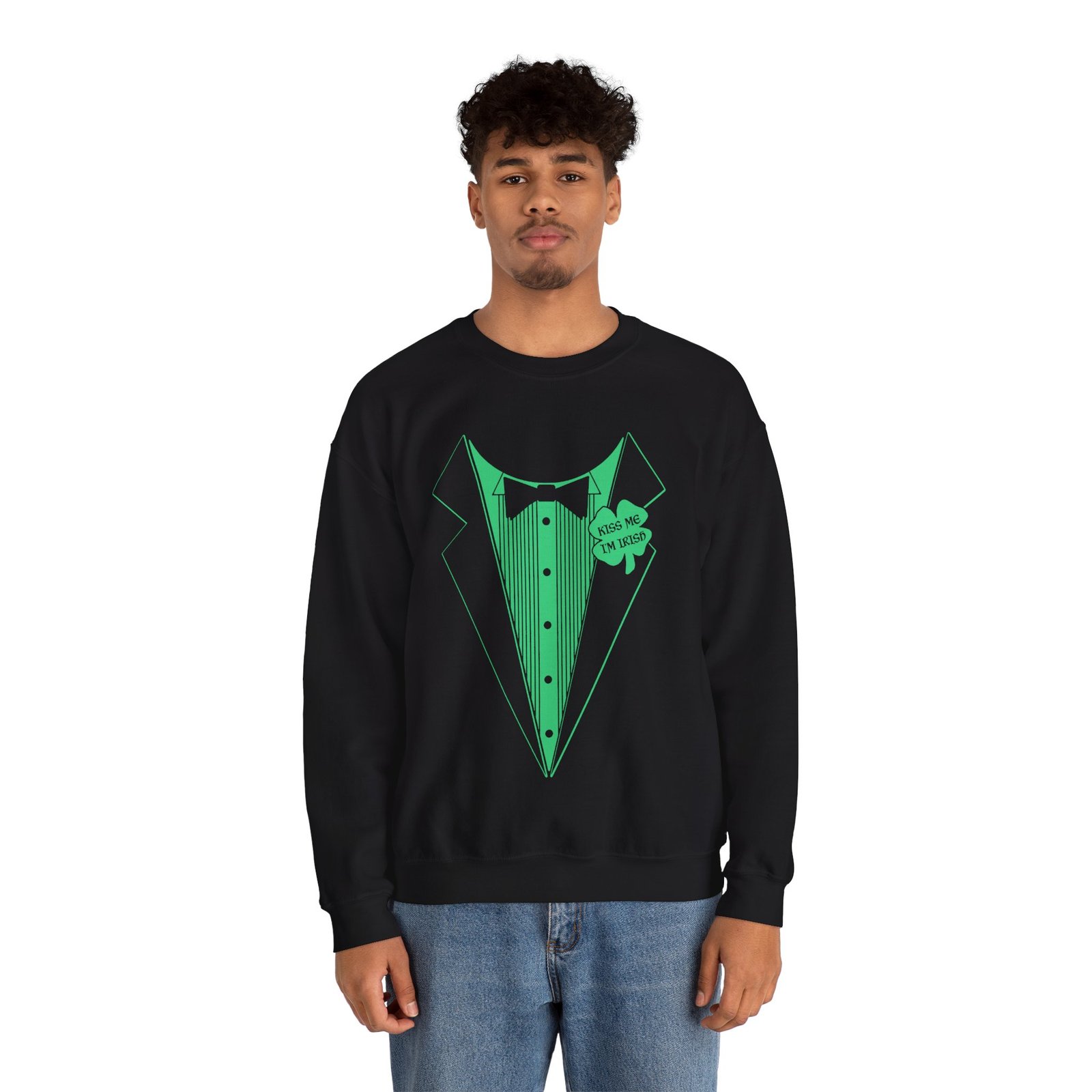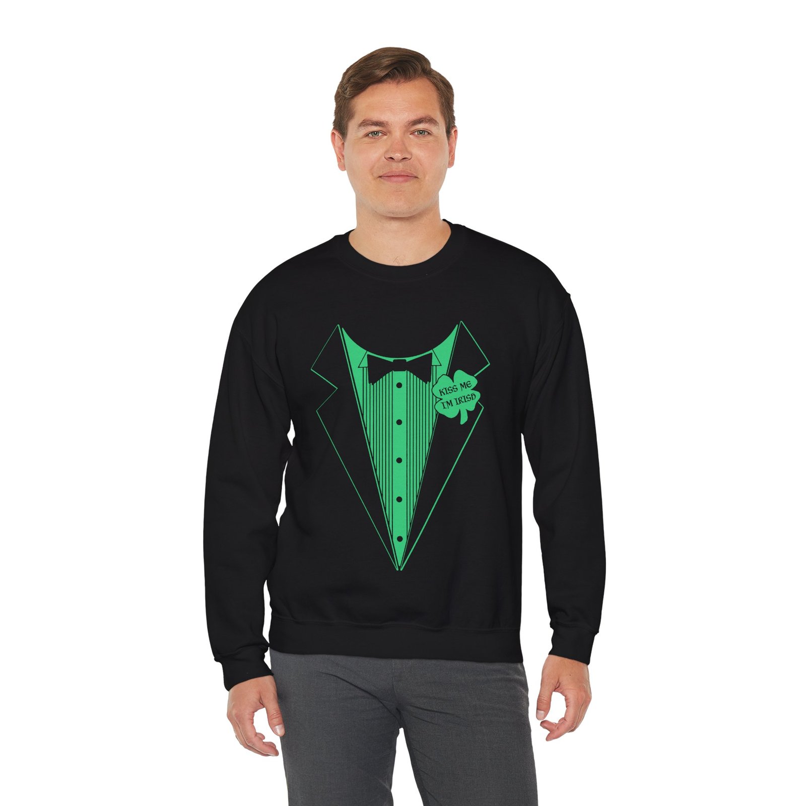 Kiss Me Im Irish, Funny Irish Sweatshirt, Tuxedo Crewneck, St Patricks Day Style, Unisex Sweatshirt, Celtic Charm, Irish AF, Heavy Blend Cozy, Shamrock Swag, St Paddys Approved, Pub Crawl Gear, Lucky Look, Proud Irish American, Formal Funwear, Irish Humor Apparel