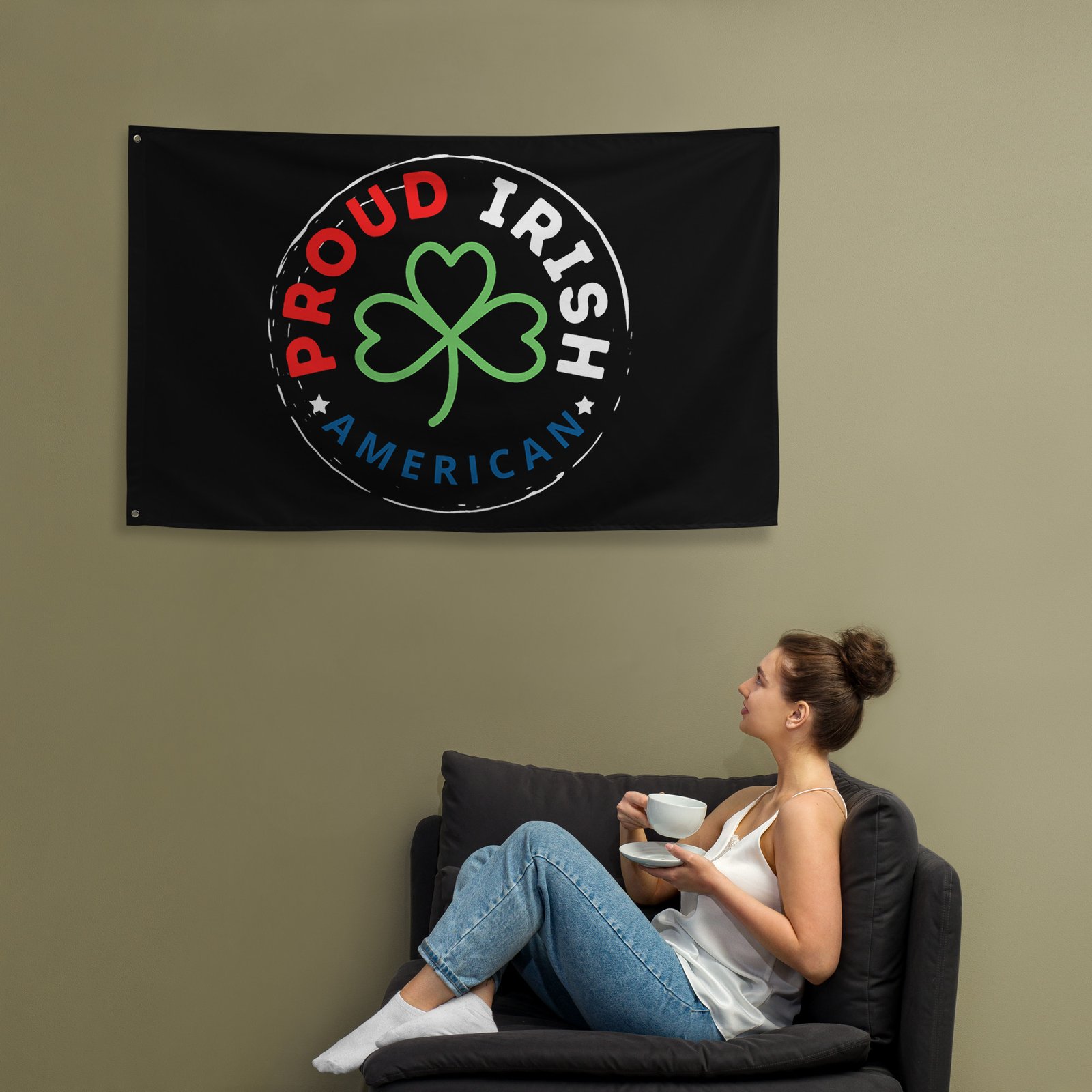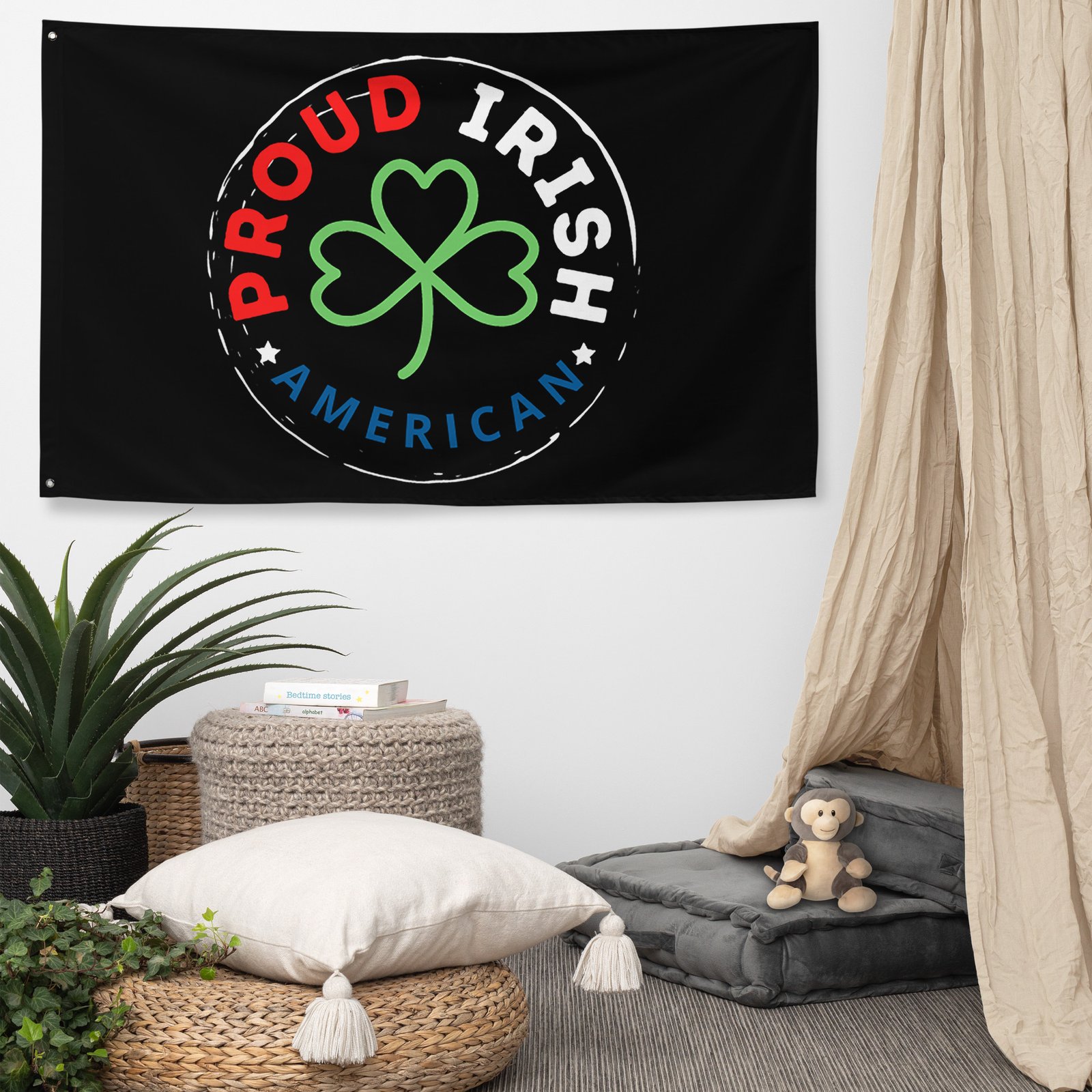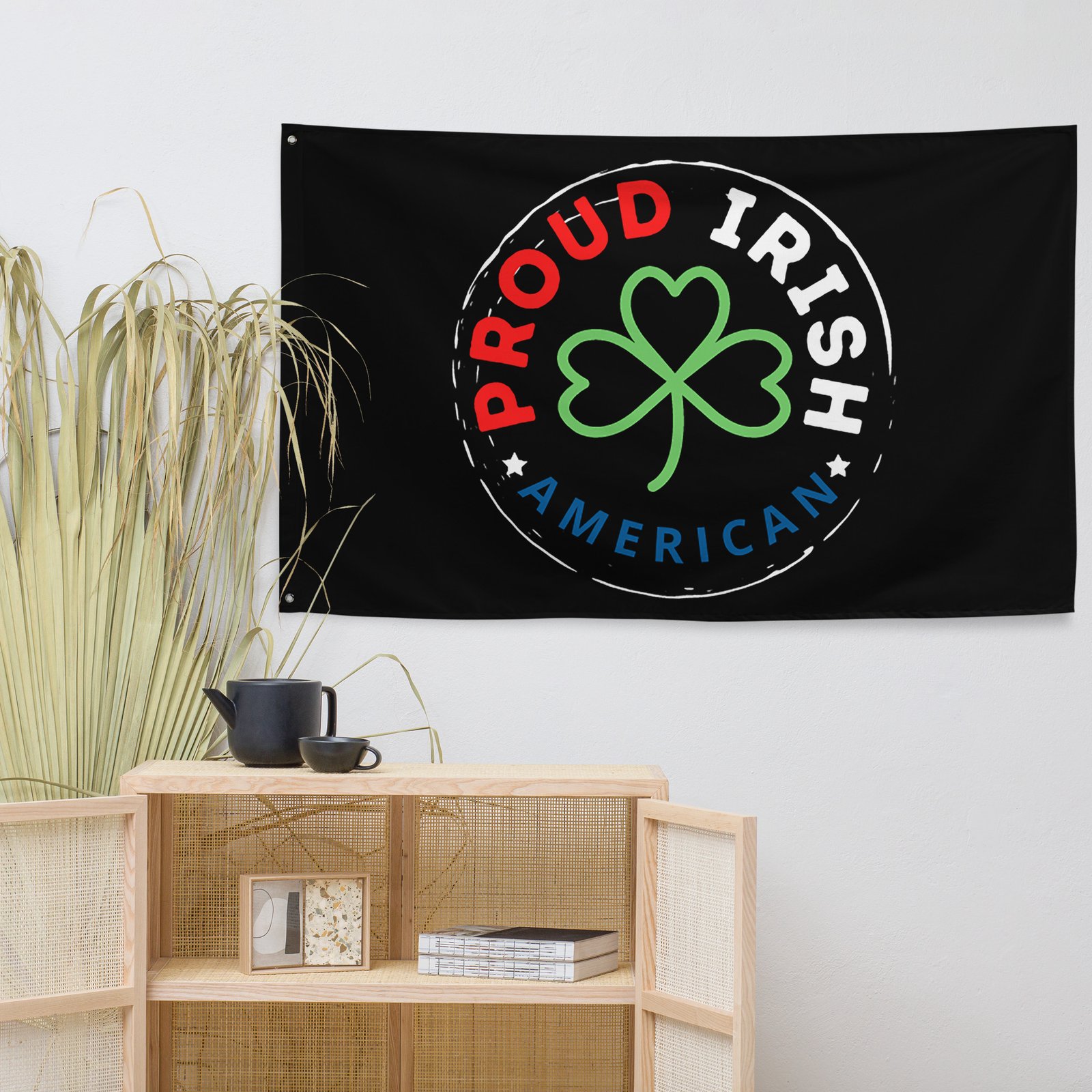 Proud Irish American Wall Flag – Signature Logo Irish Heritage Banner for Home, Events & Celebrations