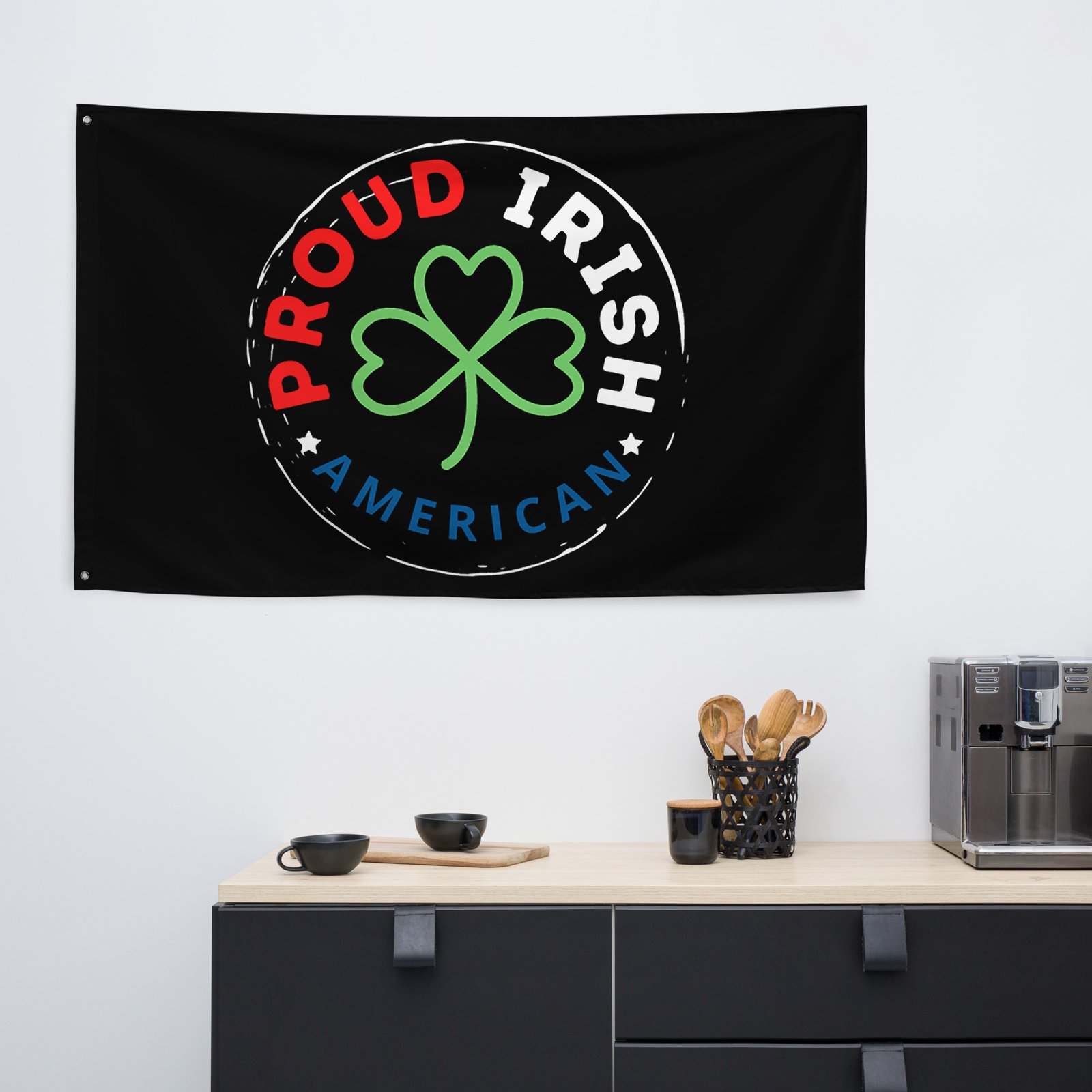 Proud Irish American, Wall Flag, Irish Heritage Decor, Irish American Pride, Signature Logo Flag, Celtic Culture Banner, St. Patrick’s Day Decor, Irish Roots, Irish Wall Art, Home Bar Decor, Parade Decoration, Irish Dorm Flag, Irish Festival Gear, Shamrock Style, Cultural Pride Display