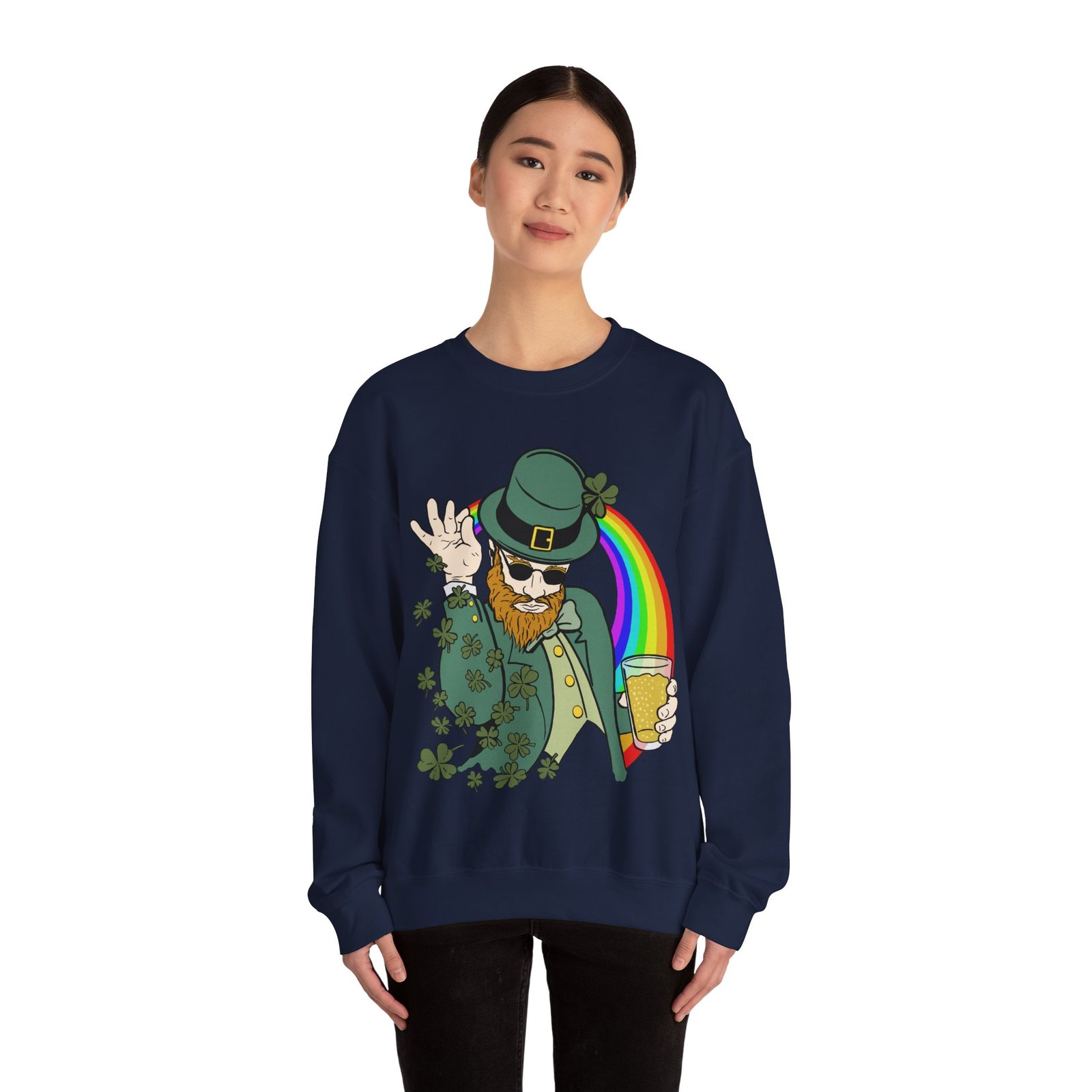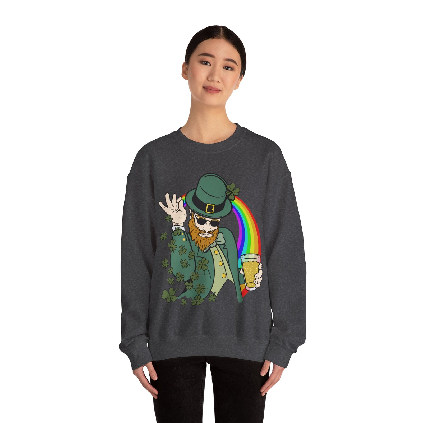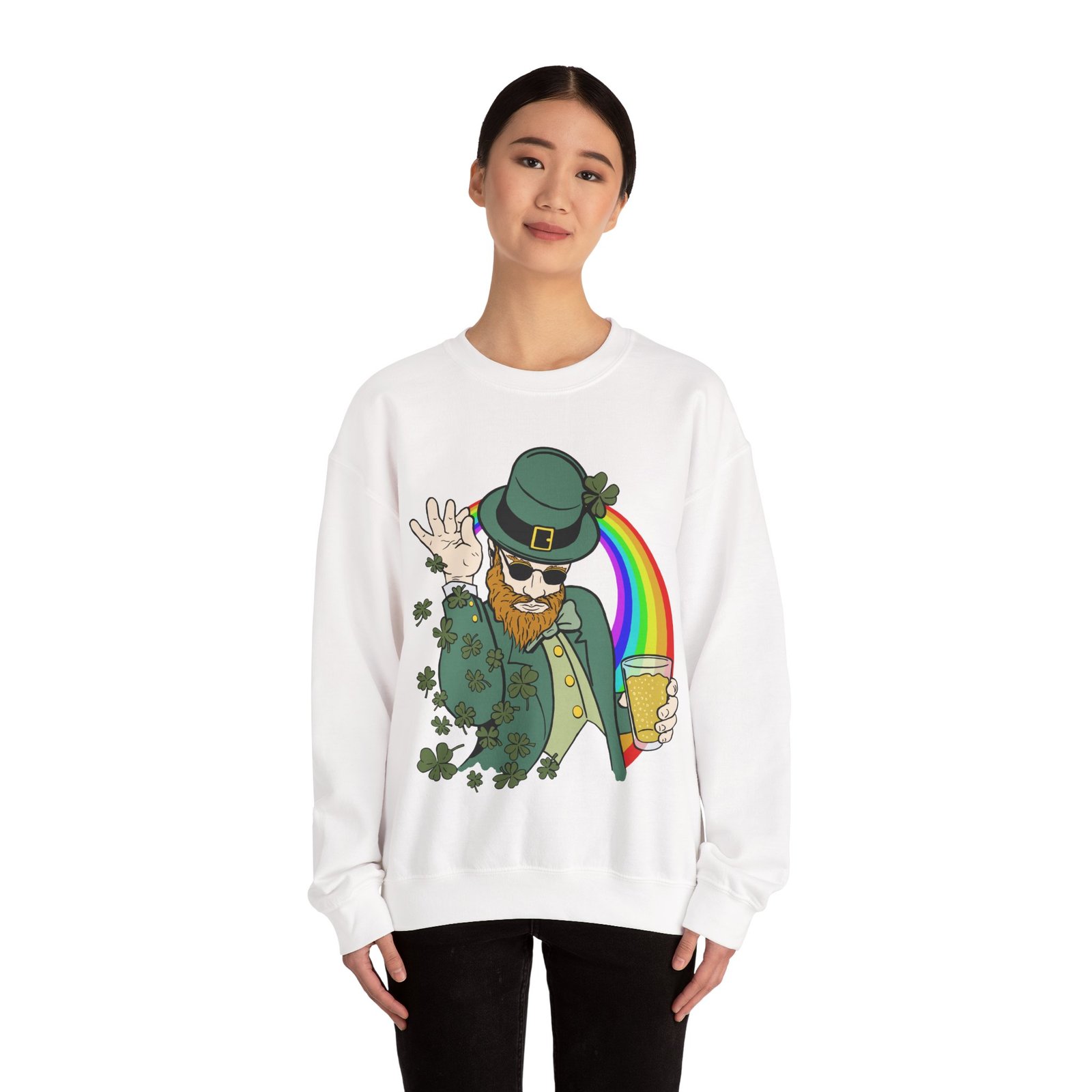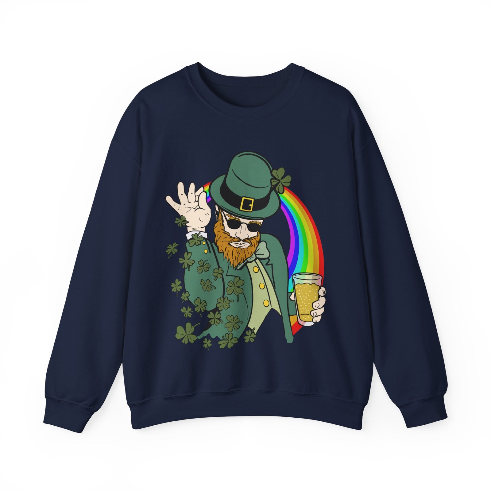 This bold and hilarious crewneck features Shamrock Bae—the iconic, sass-loaded leprechaun mid-sprinkle, shamrocks flying like he’s casting lucky spells (or just showing off).
